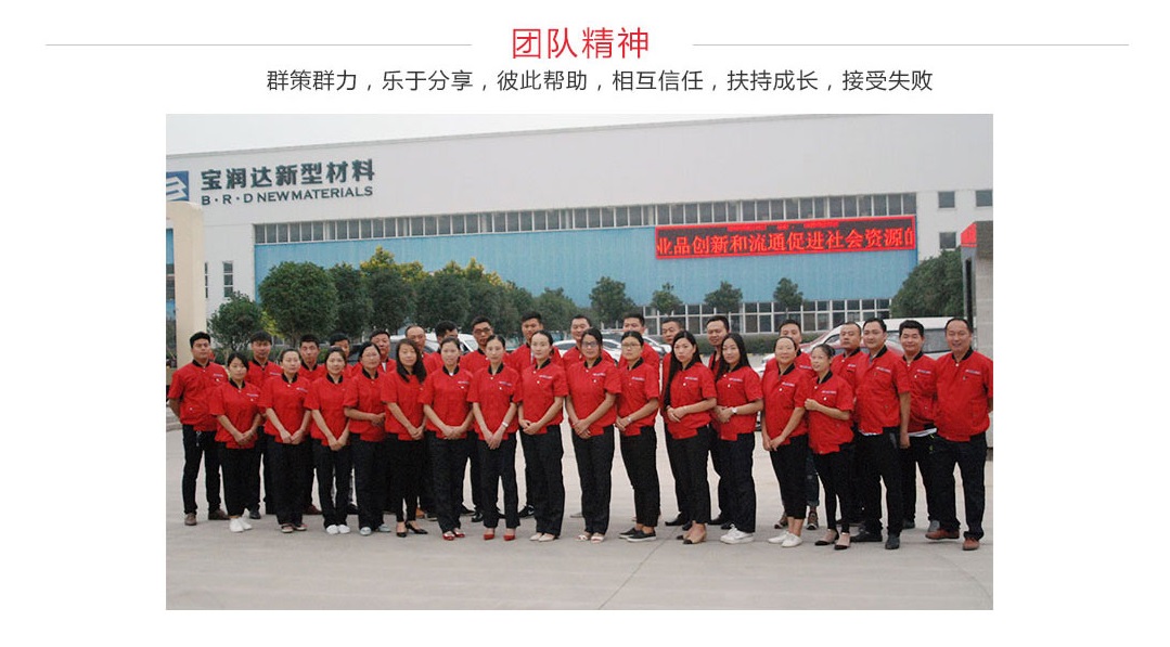 寶潤(rùn)達(dá)新型材料有限公司以追求“品質(zhì)至上,誠(chéng)信待人”為使命,堅(jiān)持綠色環(huán)保生產(chǎn), 堅(jiān)持以人為本,用心打造讓客戶滿意的產(chǎn)品與服務(wù),給員工提供更加安全、舒適的工作環(huán)境 ,正向著更高、更強(qiáng)的目標(biāo)邁進(jìn)。