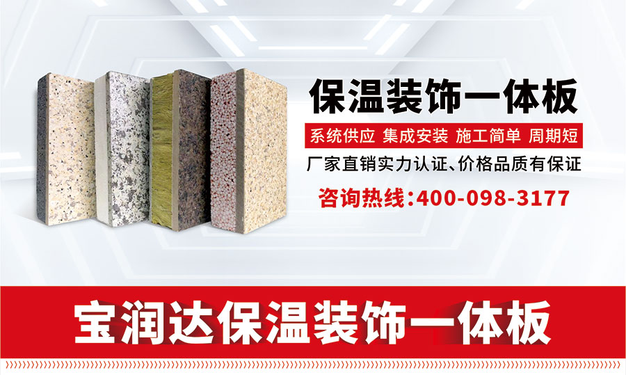寶潤達保溫一體板由硅酸鈣板和保溫層復合加工而成。具有高檔裝飾效果、耐久保護、高效節(jié)能,耐候、抗污染、耐酸雨、附著力強、致密性好,施工方便特點,壽命達幾十年以上。