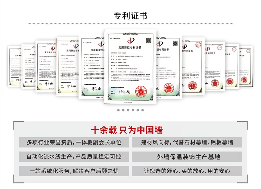 寶潤達在保溫裝飾一體板領域的優(yōu)勢,不僅僅只是建立在現(xiàn)代化的生產(chǎn)車間、先進的制造工藝、卓越的產(chǎn)品性能上。寶潤達自1996年涉足外墻裝飾領域以來,積累了24年的行業(yè)經(jīng)驗,擁有一支行業(yè)高水準的設計、安裝施工隊伍,真正具備集產(chǎn)品、設計、施工為一體,打造精品工程的能力。只要您給寶潤達參與的機會,我們就有十足的信心向您提供放心的系統(tǒng)化解決方案。